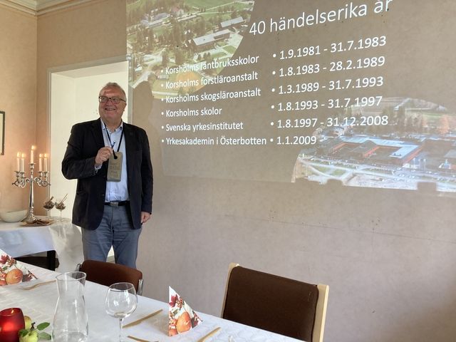 Den 1.9.1981 inledde den nyblivna forstmästaren Kenneth Heimdahl sin karriär vid Korsholms lantbruksskolor som lärare inom skogsbruket. Den då 24 år gamla Kenneth hade värvats från sommarjobbet inom skogsbruksplanering i Sideby till att börja undervisa i skogsbruk vid lantbruksskolan och sköta om skolans över 500 ha stora skog. Nu 41 år senare, på våren år 2022, sätter han punkt för en hängiven karriär inom yrkesutbildningen och tar sig an pensionärslivet.