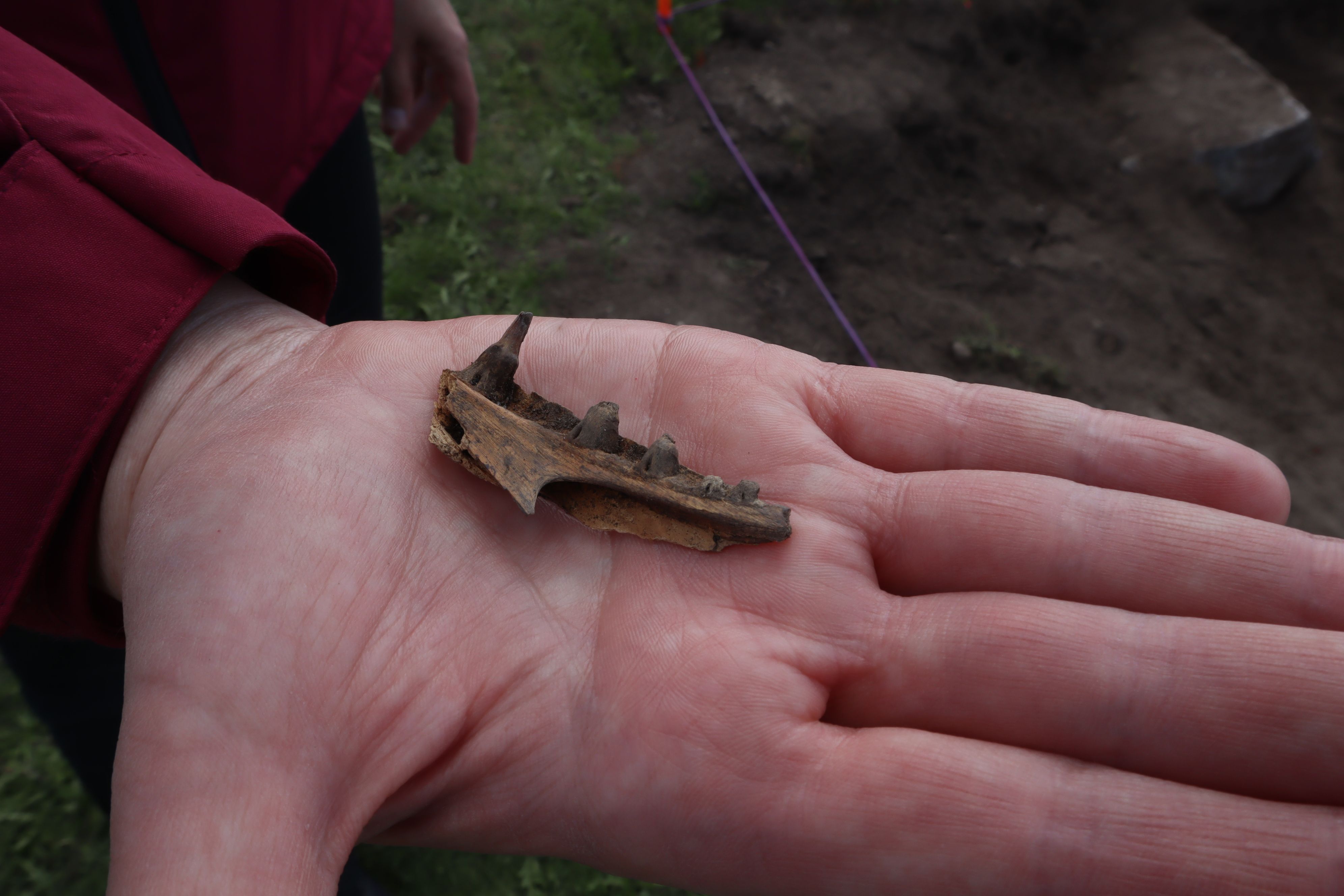 En mungiga hittades redan första grävdagen – ett instrument som var vanligt på medeltiden.