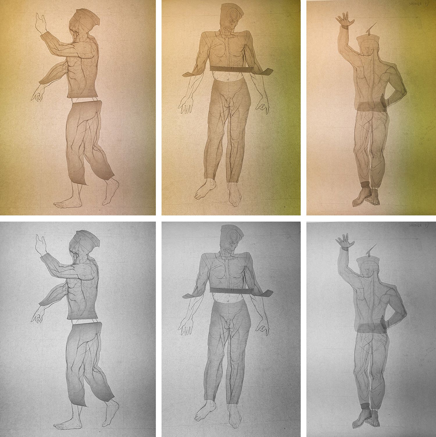 Teckningar och fotografier är vad Holíková främst kommer att arbeta med under sin vistelse på Ateljé Stundars. Allt det materialet ska så småningom ligga till grund för – rätt gissat! – konstruktionen av en dykardräkt av den modell som beskrivs ovan, i skala 1:1.