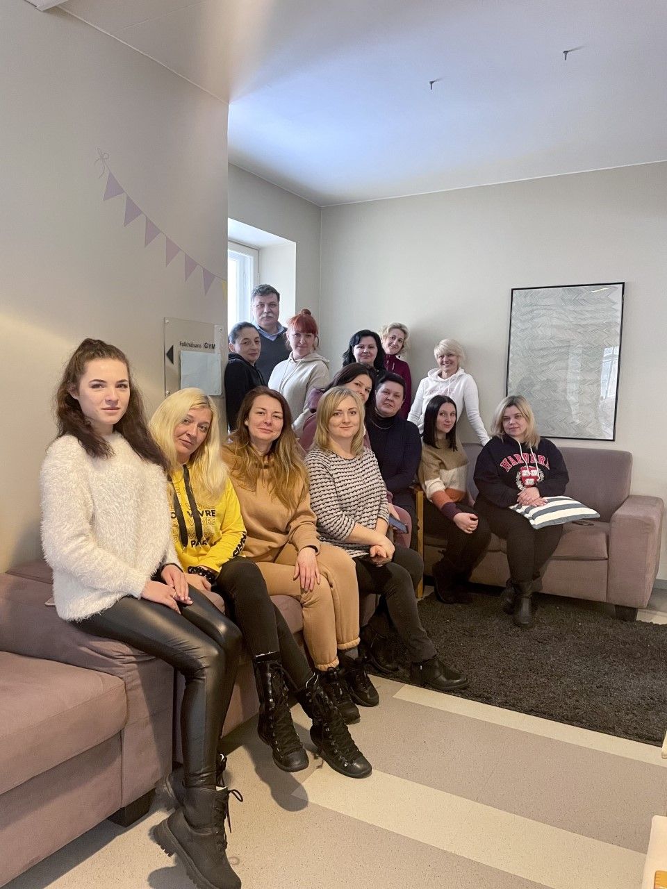 För att förbereda gruppen inför praktiken så har vi försökt lära oss svenska på så många olika sätt som möjligt och vi har arbetat mycket med att våga prata och uttrycka oss, t.ex. har vi spelat många sällskapsspel. Vi har också byggt upp ett fint samarbete med Folkhälsans daggrupper, vi umgås och ordnar aktiviteter varje vecka. Vi har regelbundet gymnastik med rörelser kopplade till historier, vi har bjudit på musik och sång, haft högläsning, pysslat och även med de äldre är sällskapsspelen populära. Dessa gemensamma stunder har blivit viktiga för så väl den ukrainska gruppen som för daggrupperna som ivrigt ser fram emot nästa träff.