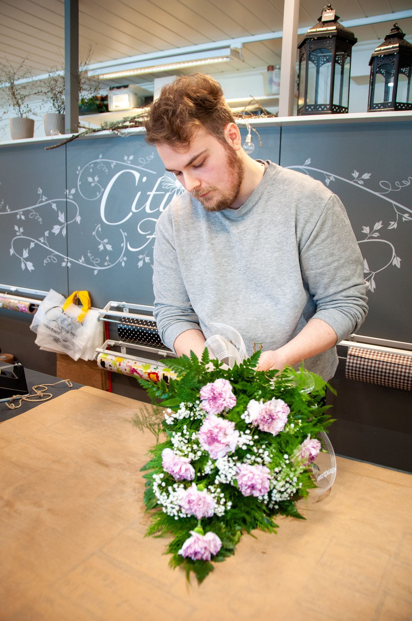Anton West från Monå i Nykarleby är 29 år och har sedan tidigare en utbildning inom textil- och beklädnadsbranschen. Nu studerar han till florist via läroavtal.