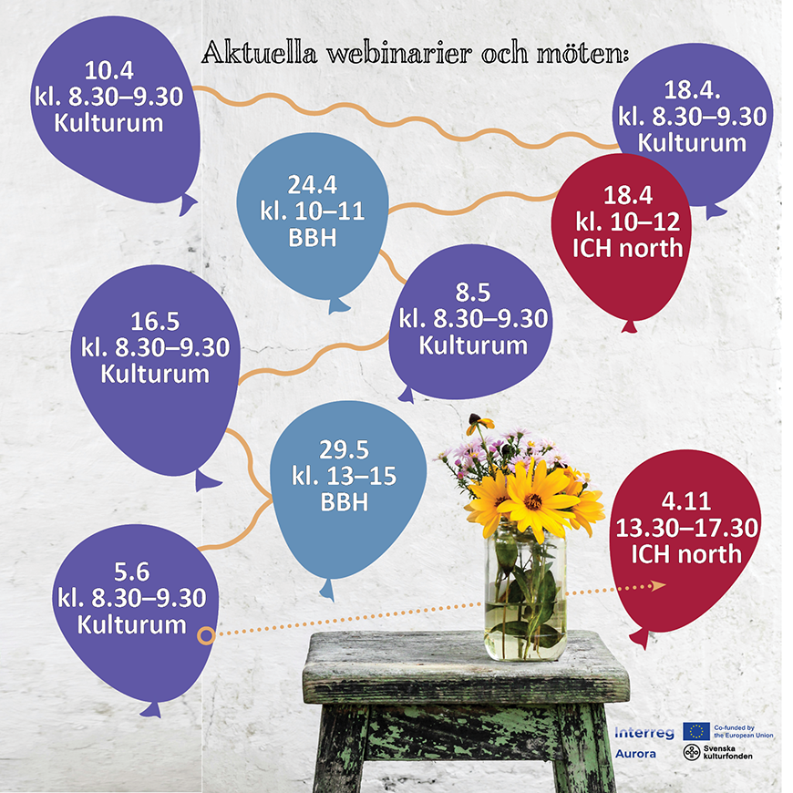 Det är full fart på projektverksamheten inom KulturÖsterbotten våren 2024. Flera av våra projekt arrangerar möten som är öppna för alla intresserade under våren – det är på gång så väl online-möten som fysiska och hybridmöten. Vi har här sammanställt en lista över möte som kan intressera dig och din förening!