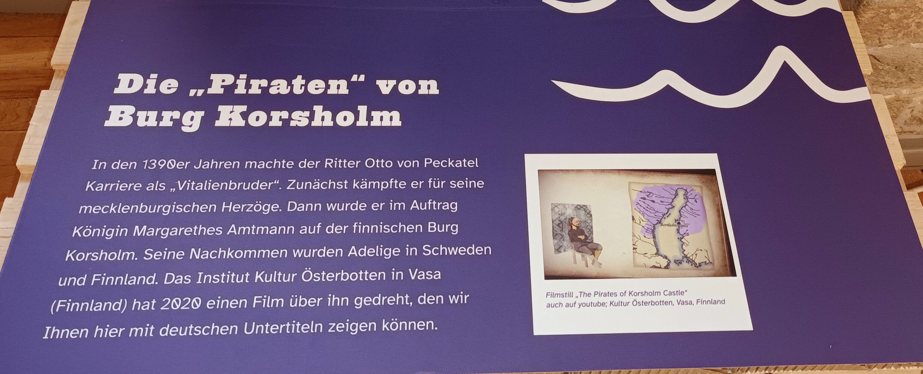 Kontakterna till Tyskland har fortlevt, och i höst visas filmen i Rostock i samband med en utställning om vitaliebröderna från Mecklenburg. Kulturchef Åsa Blomstedt och projektledare Heidi Hummelstedt hade i september glädjen att bli inbjudna till Rostock, där vi fick bekanta oss med utställningen och höra mer om den pågående forskningen kring stridigheter på Östersjön under medeltiden. Vi fick också besöka Bad Doberan där Albrekt av Mecklenburg ligger begravd. Det var han som på 1360-talet lät grunda fästet på Korsholm, och många av vitaliebröderna hade kopplingar till honom.